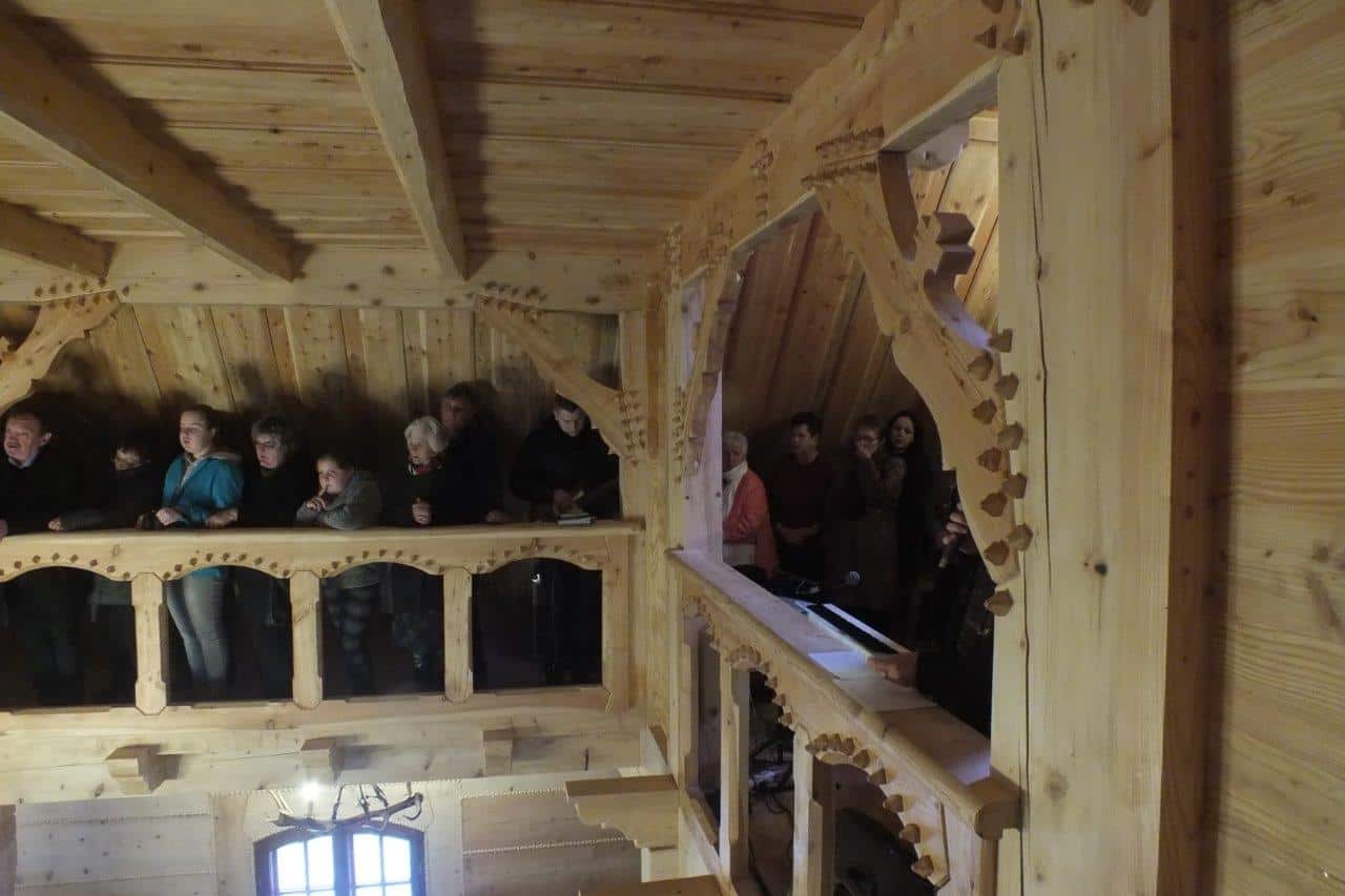 O tym, że z drewna można wyczarować bajeczne konstrukcje można przekonać się oglądając nowo postawiony kościółek w Mucznem w Bieszczadach. Modrzewiowe i jodłowe bale w jego ścianach, ułożone z ciesielskim pietyzmem, świecą jeszcze świeżością i wciąż pachną żywicą, głosząc pochwałę budowniczych.
