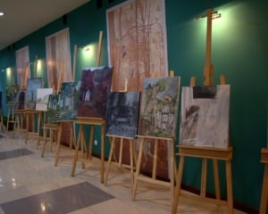 Kilkadziesiąt prac artystów z Polski i Słowacji biorących udział w jesiennym plenerze malarskim pod hasłem „Leśne ślady wiary” można oglądać na wystawie w auli Zespołu