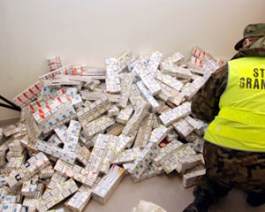 Funkcjonariusze Straży Granicznej z Sanoka, w trakcie prowadzonej kontroli pojazdów na drodze wojewódzkiej nr 991, w jednym z kontrolowanych samochodów, ujawnili w bagażniku 572 kartony