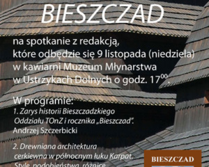 Bieszczadzki Oddział Towarzystwa opieki nad Zabytkami serdecznie zaprasza miłośników zabytków i czytelników rocznika „Bieszczad” na spotkanie z redakcją, które odbędzie się 9 listopada (niedziela) w