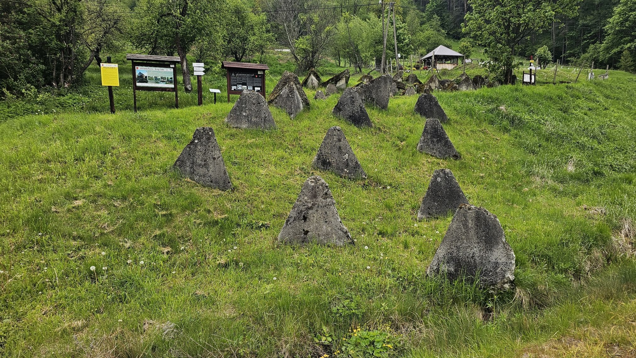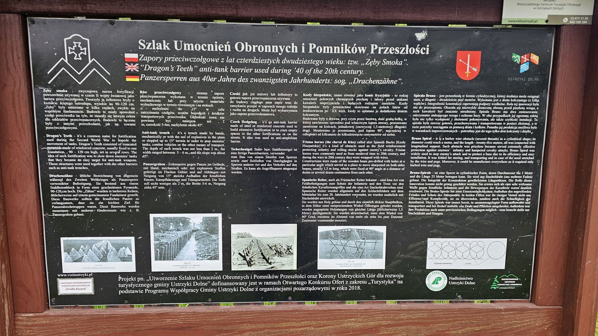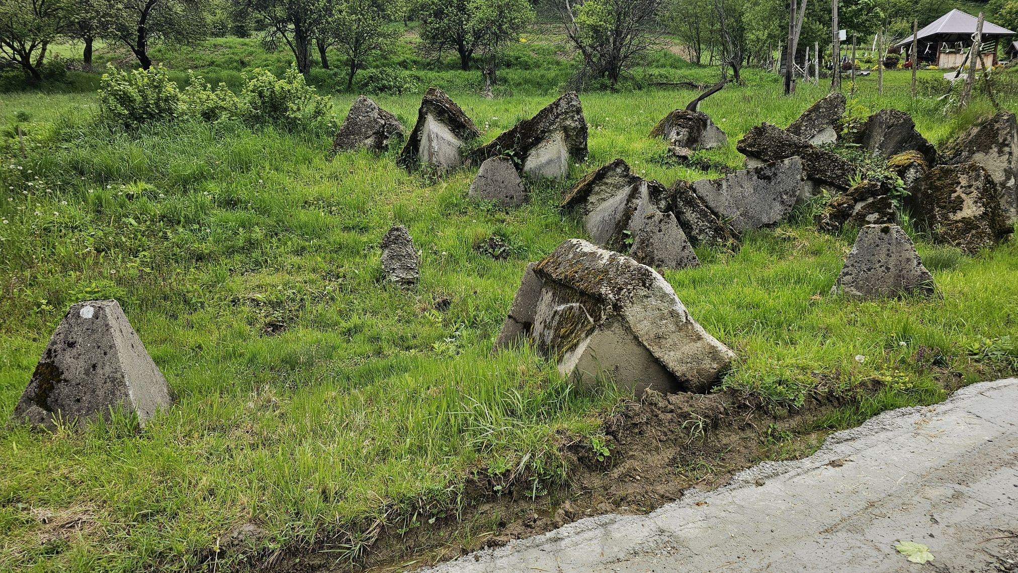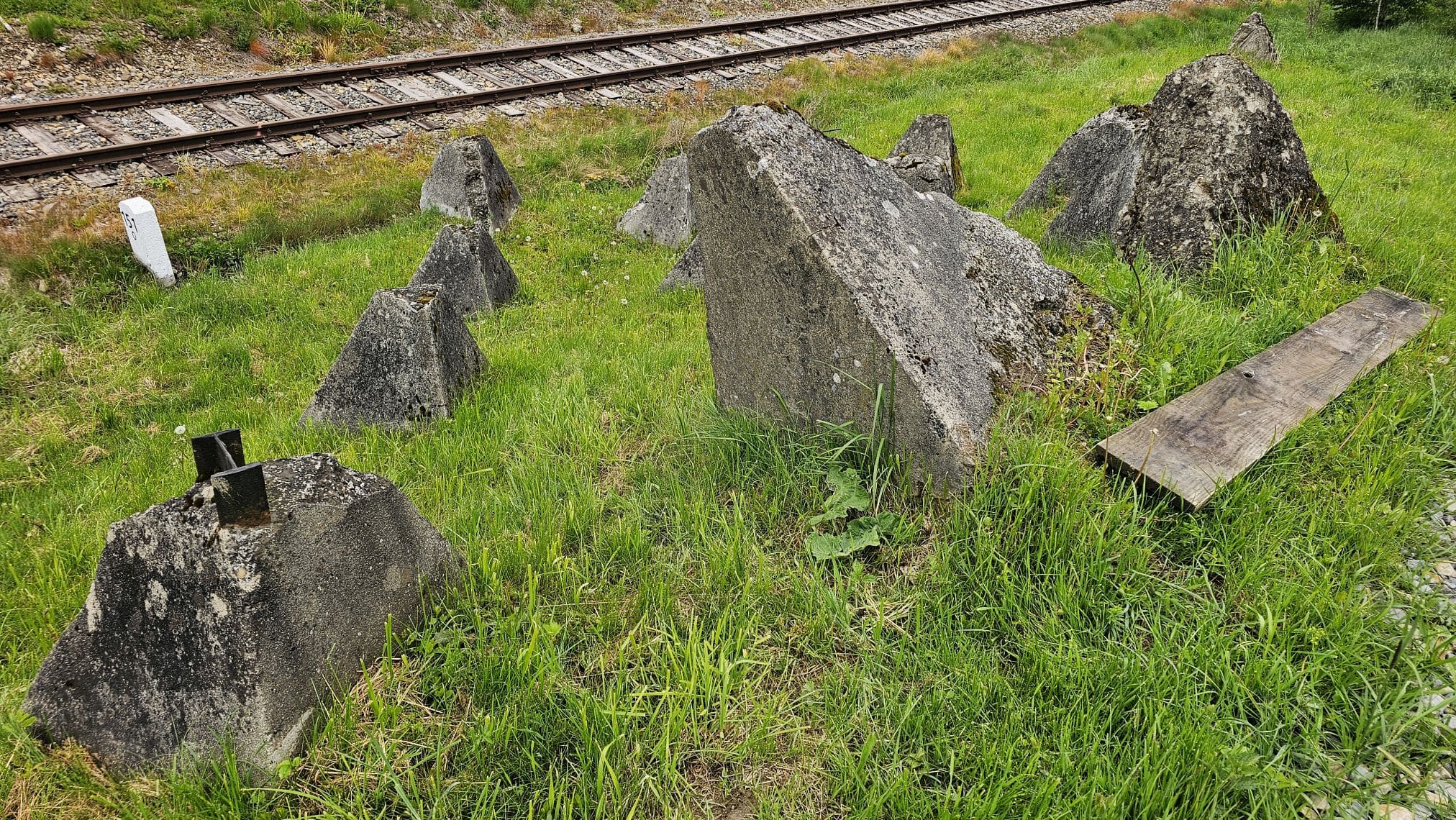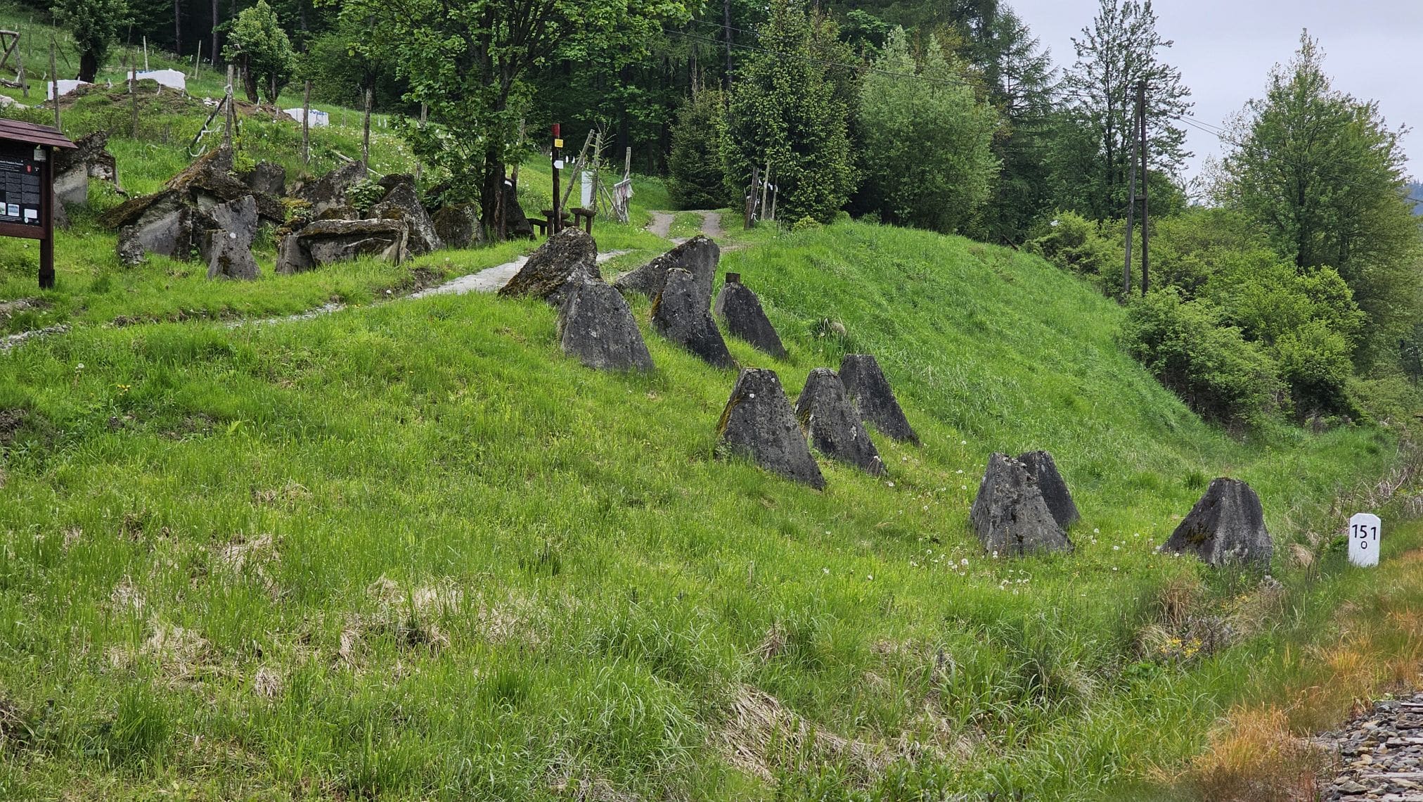 To żelbetowe zapory przeciwczołgowe z drugiej wojny światowej. Ustawili je w pobliżu torów kolejowych Niemcy, którzy w ten sposób chcieli powstrzymać w 1944 roku natarcie radzieckich czołgów. Przez lata leżały zarośnięte trawą i zakrzaczone, niektóre na skarpie nad Strwiążem. W 2017 roku zostały odsłonięte i stanowią jedyną tego typu atrakcję turystyczną w Bieszczadach.