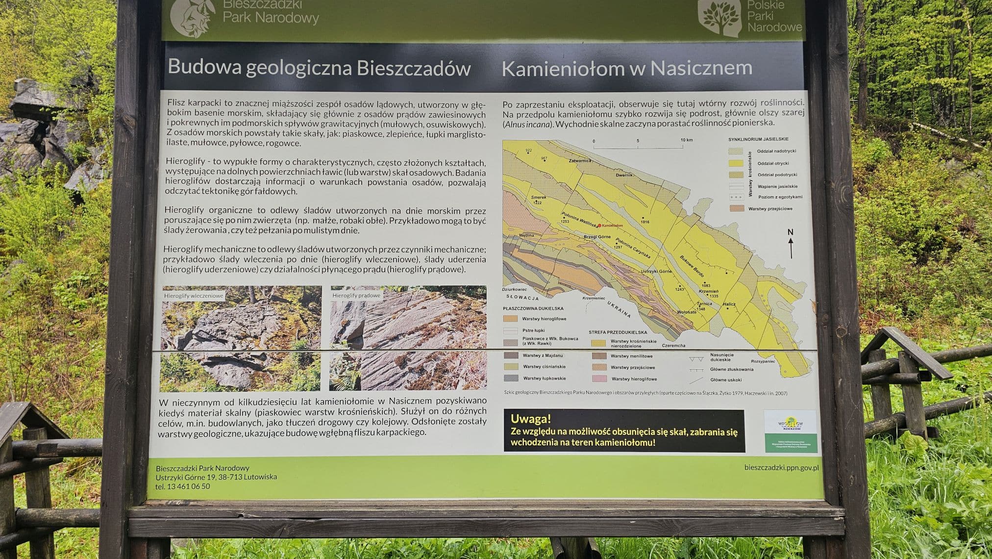 Nieczynny kamieniołom w Nasicznem to fajne miejsce do poznania fliszu karpackiego, utworzonym w głębokim basenie morskim składający się głównie z osadów. W nieczynnym od kilkudziesięciu lat kamieniołomie pozyskiwano piaskowiec warstw krośnieńskich. Służył głównie jako tłuczeń do budowy dróg i nasypów kolejowych. Wydobycie odsłoniło pokłady wspomnianego fliszu karpackiego. Dziś kamieniołom zaczyna już porastać roślinnością.