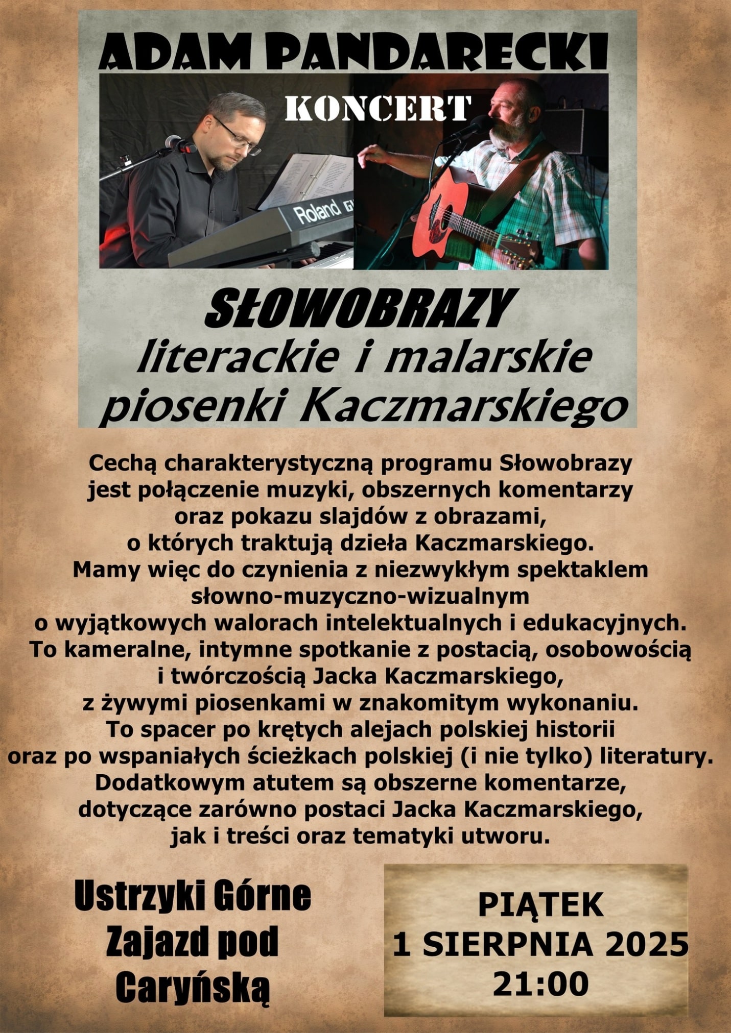 Piatek, 1 sierpnia 2025, Zajazd pod Caryńską w Ustrzykach Górnych. Start o godzinie 22:00, wstęp wolny.